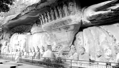 1945年,抗战胜利曙光初现的那个春天,以杨家骆为首的考察团自重庆出发赴大足考察,一行人在大足进行了7天学术考察,为这里精美的石雕和宏阔的释学典义而震惊,认为大足石刻足以与大同云冈石窟、洛阳龙门石窟鼎足而立。