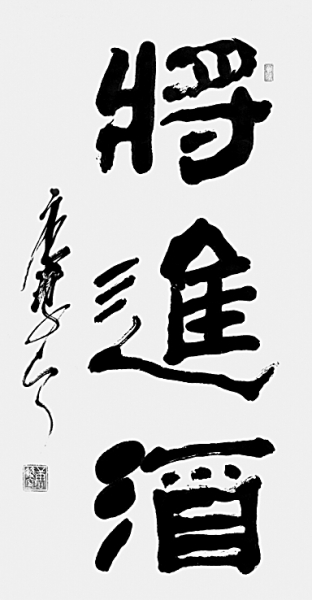 潮流召唤,形势将临,力量具备,这就需要今天之书家“积极顺其自然”,需要“主动”。没有“主动”,则是“消极顺其自然”。愚以为此中之“主动”,勤学苦练,不在话下,精神境界,则当有四个层次。一为“胜人”,今天之书家要有“胜人”、超越古人、超越他人之胆识之气魄,“胜人”之后的第二个层次是“胜己”,战胜自己,胜人容易,但盲目胜人,进而自不量力,甚至市场取向、商业操作、沽名钓誉、文人相轻、相互排挤,彼此攻讦,此乃当今书坛之怪现象,是“胜人”走向了反面,需要“胜己”。如何“胜己”?作为书法艺术家,就要有一种超然淡定的情怀,无可无不可,“清水出芙蓉,天然去雕饰”;这就需要进入第三个层次,“无己”,无我,纵横黑白之间,驰骋尺幅之内,那是一种“真美”的享受、一种“超我”的“大快”;而到了“超我”之“大快”的层次,也就进入了第四个层次,“善人”,进入“善人”的层次,书法成为净化心灵、美化生活、陶冶自己、愉悦他人的工具,成为中国传统艺术的“普罗米修斯”,此层次非故意而为之,乃自然之使然。倘如此,我之“真美”换得他人之“真美”,己之“大快”融为众人之“大快”,岂不善哉!