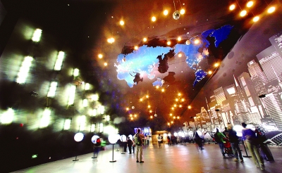 作为上海世博会主题展馆的城市地球馆,通过“地球之光”、“危机”、“蓝色星球”、“解决之道”、“我们只有一个地球”五个展区,分别讲述城市的蔓延、生态问题、意识的转变、解决之道、参观者的反思等内容。 以“共生”为主线,揭示人类、城市与地球万物的“共生”和“共赢”。 本报记者 刘新武摄