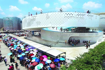 | 本报上海6月5日电(记者李玉兰、金振娅)截止到今天上午11时28分,上海世博会累计参观者超过1000万人次。 据世博局的统计显示,1000万人次中团队入园约占35%。根据票务中心提供的数据,上海世博会门票自2009年3月27日正式启动销售以来,截至6月4日,累计销售各类门票3948.7万张,其中个人票2954万张,团队票94.7万张。与此同时,境外共销售门票106.9万张,其中个人票100.1万张,团队票6.8万张,境内各世博游指定旅行社接待及预约的外宾团为98.6万人次。 (新华社记者 凡军摄) |