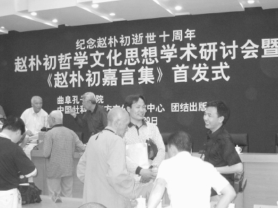 | 为纪念世界著名宗教学家赵朴初先生逝世十周年,日前,来自全国各地的专家学者和高僧大德二百余人聚会中国社科院缅怀这位思想大家。图为纪念会议结束后与会者仍热烈交谈朴老以学立德、善事感人的高尚品德。 |