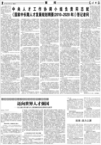 《国家中长期人才发展规划纲要(2010-2020年)》答记者问