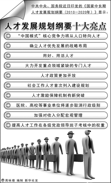 “当前世界正处在大发展、大变革、大调整时期,加快人才发展是在激烈的国际竞争中赢得主动的重大战略选择。如果说在上世纪国际竞争主要是军事竞争、制造业竞争、贸易竞争、市场竞争、资本竞争,那么新世纪的国际竞争将更加集中在人才的竞争和高新技术的竞争。”著名社会学者、中国社科院社会学研究所所长李培林研究员分析指出,正是在这种大背景下,我国制定了《国家中长期人才发展规划纲要(2010-2020)》(以下简称《纲要》),并提出“人才是我国经济社会发展的第一资源”。