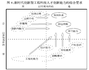 创新型工程科技人才的创新能力首先是以创新主体的知识结构、学习能力和创造技能的内在整合为基础,突出创新主体知识结构的复合性和学科交叉性,体现为创新型工程科技人才要具有多元复合的工程设计能力、工程集成能力、工程实践能力以及其他相关的能力和要求。