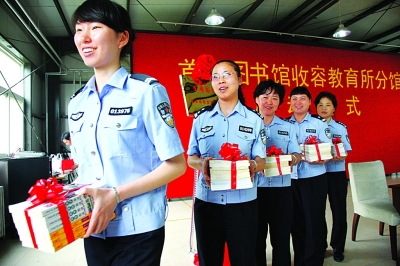 首都图书馆日前举行与北京市公安局收容教育所共建图书分馆启动仪式,将满足被收教人员阅读需求的1000册最新图书送到收教所民警手中。首都图书馆通过系列图书分馆建设积极打造面向弱势及特殊群体的公共文化服务体系。本报记者 赵洪波摄