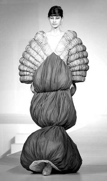 6月9日,模特在展示毕业生设计的时装。当日,香港理工大学在香港举行纺织及制衣学系毕业生时装作品展。
