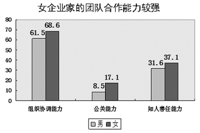 女性对真善美的执着,使女性企业家成为企业家队伍中一道美丽的风景,更能获得社会的欣赏和支持;新经济时代所带来的新的生产、服务和生活方式,为女性尤其是知识女性平等、自由的参与经济活动提供了更好的契机;女性对他人的理解、关爱、细致的天性和感性的魅力,使得她们在产品设计、客户服务方面更有优势。同时,对合作伙伴的重视与关照,也更有利于组织的和谐发展。我们相信,更能赢得未来的卓越企业家应该是:事业成功、受人尊重、与人快乐、给人帮助的企业家,而这也正是优秀的女性企业家的追求。