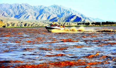 近日,游客乘船在宁夏青铜峡黄河大峡谷破浪前行。宁夏青铜峡黄河大峡谷长十余公里,宽五十至一百米,两侧崖壁高三十米以上,被誉为“黄河中上游第一峡谷”。新华社记者 刘泉龙摄