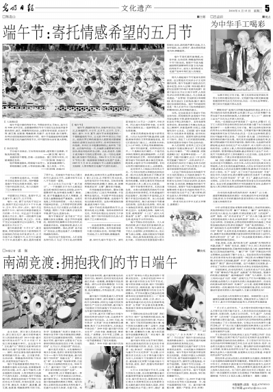 人们出于移风易俗目的和提升节日文化的爱国主义内涵改造端午节,使端午习俗有了更为深厚的文化内涵和更为生动的习俗活动,同时,各地内容丰富、生动活泼、情趣盎然的端午节习俗活动,使端午节成为蕴涵独特民族精神和丰富文化内涵的传统节日,对中国民俗生活产生了重大影响,同时也成为人类非物质文化遗产宝库中绚烂迷人的瑰宝。(作者为北京大学中文系文学博士、副教授)