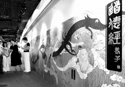 6月14日,特大型漆艺佳作《道德经颂》在北京漆宝斋锦丽漆艺工作室问世。这部作品长41米,高1.8米,由老子出关、孔子问礼、三顾茅庐、和谐盛世、国泰民安等12个篇章组成。(本报记者 刘新武/摄)