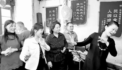 安徽省池州市东至县东流老街一幢普通民居里,每天晚上,社区里的戏曲爱好者都会自发来到这里,伴着浓郁的黄梅曲尽情演唱。东流离黄梅戏之乡安庆不远,这里的很多人都是从小听着黄梅戏长大的。自2007年5月戏迷俱乐部成立以来,每天晚上,戏迷们的吹拉弹唱给老街增添了欢乐氛围和文化气息。除了演唱经典黄梅戏唱段外,戏迷们还自编自导诸如崇尚文明之风、孝敬父母公婆等小曲目,也排演了一些大型剧目,让戏迷们在锻炼中逐步提高自己。最近,在池州市戏迷票友大奖赛上,东流戏迷俱乐部分获二、三等奖。(本报记者刘新武摄影报道)