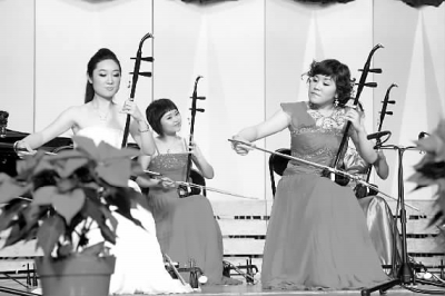 中央音乐学院民乐系讲师孙凰(右一)率领她的高徒日前在京举办《师生二胡音乐会》。师生们都荣获过多项大奖,孙凰还曾赴美法等多国演出,还在新加坡等国音乐学府举办二胡讲座,为弘扬中华民乐发挥了重要作用。(本报记者 吴力田 摄)