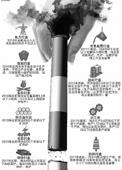 ●双项目标:淘汰落后产能既是当前中国经济面临的一项紧迫性工作,又是一项长期的战略任务。一方面,节能减排目标年底要兑现,必须加快落后产能的淘汰速度;另一方面,落后产能与产业结构优化、发展方式转变背道而驰,谋求可持续发展必须将落后产能淘汰出局。