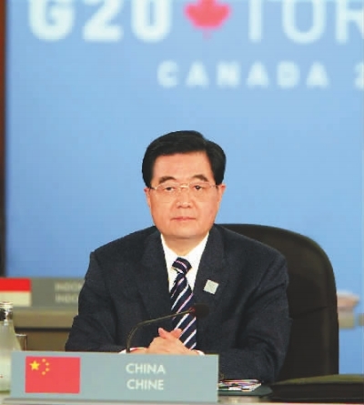 很高兴来到多伦多参加二十国集团领导人第四次峰会,同各位同事共同讨论推动世界经济全面复苏这个重大议题。首先,我谨对哈珀总理和加拿大政府为本次峰会所作的积极努力和周到安排,表示衷心的感谢!我还要感谢大家对上海世博会给予的宝贵支持和帮助。