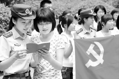 6月28日,青岛边防支队李沧边防大队警官在为青岛科技大学的新党员宣讲党的光辉历程。“七一”前夕,青岛科技大学新党员与共建边防官兵联合开展“重温党的历史,迎接党的生日”活动。本报通讯员宋潇摄