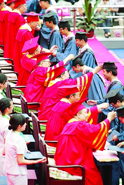 感恩,就要担起责任。赴西部就业、参加“三支一扶”的学生代表,成为复旦毕业典礼上获得掌声最多的人。而复旦大学校长杨玉良,这样向毕业生们破解“大学的责任”:一所优秀的大学必然具备强烈的责任感。没有社会责任感的大学是可怕的,它会在社会各种各样的诱惑中迷失方向,流于平庸,自甘堕落。同样,人若是缺乏责任感,他的眼光必然会短视和功利。……作为复旦的校长,我当然期望复旦学生能够凭借自己的知识和能力,为社会作更大的贡献。因为我认为复旦最大的社会责任,就是为国家源源不断地输送具有高度社会责任感、引领社会发展、担当国家重任的优秀青年。杨玉良勉励每一位即将离开母校的复旦学子,关注人类命运、关注社会发展、关注百姓疾苦,不要做一个高高在上的批评者,而要做一个勇于担当责任、解决问题的创造者。