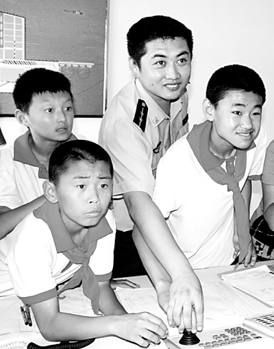 日前,山东省日照市特殊教育学校的聋哑儿童应邀来到了日照边防检查站,体验了一次难忘的军事夏令营。民警叔叔为孩子们表演了队列、擒敌拳,手把手教他们如何使用头盔、警棍、盾牌等警用装备,给他们现场演示叠被子技巧,让孩子们度过了快乐充实的一天。本报通讯员 王欣、贺涛摄