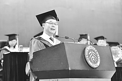 作为母校,总是希望你们每一个人,在事业的征途上,在人生的攀登中,能够走得更远,攀得更高。但无论你们走得有多远,攀得有多高,我相信,燕园的湖光塔影会永远印刻在你们心中,而那象征着科学与民主、历经近百年依然在北京老城区巍然屹立的北大红楼,仍然会是每一个北大人精神力量的源泉!