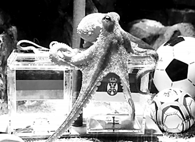 7月10日晚,南非世界杯的季军之战,德国队以3比2击败了乌拉圭,如愿以偿。不过,这一结果对德国奥伯豪森水族馆的章鱼“保罗”来说毫无悬念,因为它在前一天已经猜中结果。“保罗”在世界杯期间走红全球,7次“预言”德国队赛绩,全部猜中,成了眼下最著名的足球竞猜“神算子”。就连万里之遥的中国球迷也称它为“章鱼哥”、“章鱼帝”。
