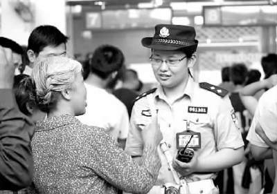 暑运期间,太原铁路公安局女警值勤队推出“51·50”服务标准,即“受理求助多一份责任、为民服务多一份热情、执行规定多一点约束、接受咨询多一点耐心、服务过程多一点主动,做到零推脱、零距离、零差错、零投诉、零冷漠。”该队民警目前已为旅客办好事500余件,收到旅客赠送锦旗12面。 (本报通讯员宫树麟、梁敬摄)