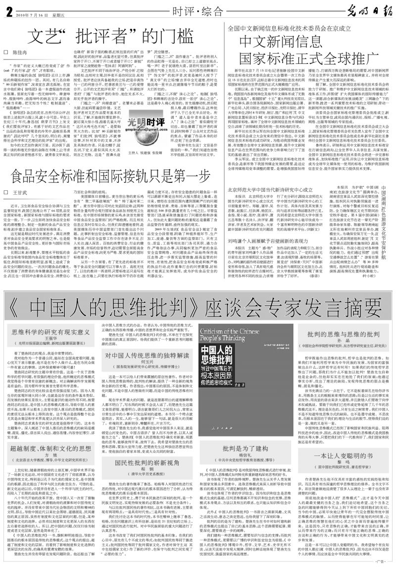 《中国人的思维批判》座谈会专家发言摘要