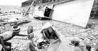 7月15日,在菲律宾巴丹半岛的马里韦莱斯,人们在事故现场打捞可用的物品。一艘渔船被台风“康森”带来的巨浪掀翻,造成21名渔民失踪,其中遗体已被找到。菲律宾国家救灾协调委员会15日通报说,截至15日上午6时,台风“康森”在菲律宾已造成23人死亡。(新华社发)