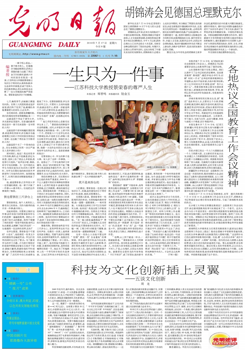 新华社北京7月16日电(记者钱彤)国家主席胡锦涛16日下午在人民大会堂会见了德国总理默克尔。