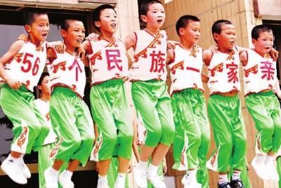 七月十六日《北京丰台区小学生在表演花式跳绳。当日,北京市第八届民族传统体育运动会官方网站开通暨合作伙伴签约仪式在这里举行,本届民族传统运动会将首次在社区开设赛场,网站的开通为运动员到各社区赛场参赛提供方便,观众可在网上浏览比赛视频。运动会将于八月二十一日至二十八日在丰台举行。(本报记者 刘新武摄)