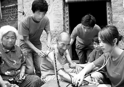 河南新乡医学院三全学院大学生暑期社会实践营队日前在卫辉市狮豹头乡开展“爱留大山深处心系空巢老人”为主题的爱心活动。队员们通过问卷调查了解当地老年人的医保、低保、生活等情况,帮老人打扫卫生、陪老人聊天、给老人按摩、量血压,为他们讲解高血压、糖尿病等常见病的症状及注意事项。(通讯员崔向前摄)