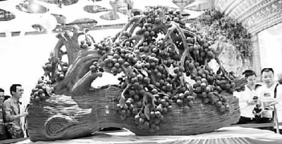 据了解,这尊红陶作品是目前世界上最大的陶艺作品之一,由广西艺术家卢权智烧制而成,以2010颗饱满的荔枝果实,代表广西各族人民建设新广西美好家园的辉煌成就。这件作品为一次烧制成功,突破了当今世界陶艺的最大极限,创下了单件作品之最。