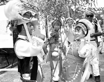8月1日,白族群众在第二届大理国际影会“中国白族百村百人”大型影像工程展览上载歌载舞。该展览精心选择百余个白族村落和万余个乡间群众,艺术地凸显我国白族地区的乡村巨变和发展,成为影会上的展览亮点。