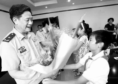 八一建军节前夕,北京市东城区地坛小学师生代表来到武警部队黄金指挥部,为值勤的武警官兵送上鲜花和锦旗,表示节日的慰问和祝福。武警黄金指挥部日前开展与驻地中小学共建帮扶活动,为学校每个班级都安装了空调,使师生得以在凉爽舒适的环境里学习。