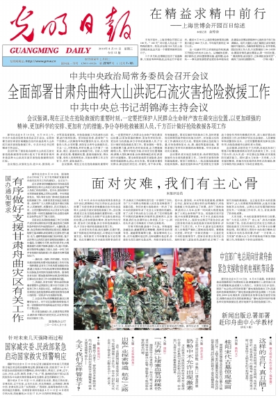 全面部署甘肃舟曲特大山洪泥石流灾害抢险救援工作