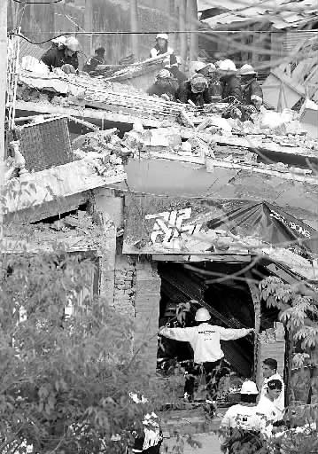 8月9日,在阿根廷首都布宜诺斯艾利斯的楼房倒塌现场,救援工作正在进行中。当天,布宜诺斯艾利斯一幢在建的五层楼房突然倒塌,砸向旁边的一幢楼房,造成至少8人受伤,15人被埋。新华社发(马丁·萨巴拉摄)
