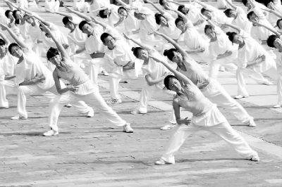 8月10日上午,由北京市总工会、北京市体育局、北京市卫生局等单位主办的“2010首都职工示范推广工间操宣传周启动仪式暨大型展演活动”在北京市劳动人民文化宫举行,3000余名职工在太庙前广场一起做第八套广播体操,在现场同时展示的还有瑜伽、太极、健身球等新型工间操,李宁、杨杨、杨凌、董炯、李素丽、周宪梁等成为工间操宣传形象大使。 本报记者王燕琦通讯员周世杰摄影报道