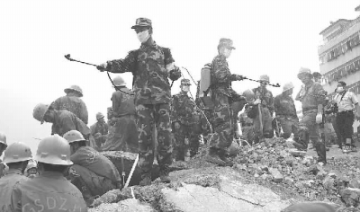陈本善告诉记者,随着时间的推移和气温的回升,灾区出现疫情的可能性增大,加上饮水困难、医疗器械紧缺,救援和防疫工作形势严峻,云南边防总队救援队在有限的条件下已同时开展了灾后防疫工作。截至目前,云南边防总队救援队对灾区防疫消毒一万多平方米,并处理了多具遗体。
