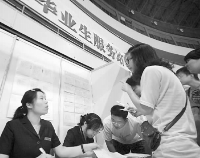 8月14日,公益招聘会上的应届毕业生服务站吸引了众多求职的大学生。当日,天津绿色通道助大学生就业首场公益性高校毕业生专场招聘会在天津市体育中心举行,共有500余家企业进场招聘,提供1万余个岗位。据介绍,该公益性招聘会将每月举办一场,持续至今年年底,以帮扶更多的大学生就业。新华社发(刘东岳摄)