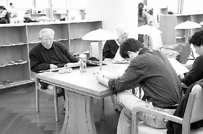 地处偏僻的城东,周边没有商业网点,杭州图书馆何以会如此火爆?8月12日下午,记者走进杭州图书馆,顿时被眼前的景象所震撼:图书馆2400个座位座无虚席,连书架周围的地上、走廊和过道里都坐满了人。看书的人群中有华发满头、戴着花镜的老人,也有在父母陪同下的孩子,更多的则是年轻人,他们有的自带手提电脑在此用无线上网,有的在音乐室听音乐。馆内还有咖啡馆,读者自带面包饮料也允许食用。