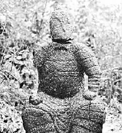 记者看到,在已被发现的石像中,有一类为将军像,一类为军官像,而一类为普通士兵像。这些石像无论大小高矮,都是用整块岩石雕成的,形态各异,有的慈眉善目,貌若原始女神;有的竖眉鼓眼,神态勇猛,酷似佛教金刚造型;有的双手插腰,有的两腿散开成弧形;有的蹲着,有的直立着。