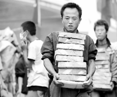 8月14日,志愿者在舟曲县三中受灾群众安置点搬运砖块。舟曲特大山洪泥石流灾害发生后,当地群众、正在放暑假的中学生、大学生组成的青年志愿者服务队,每天从事着繁重的救灾物资搬运、生活垃圾清理等抢险救灾活动。 新华社记者王鹏摄