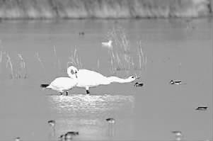 天鹅喜欢在芦苇荡中觅食,可如果芦苇荡太过茂密,没有一定的水域空间,没有“九蹬十八刨”的助跑距离,那么一旦遇有紧急情况,往往就会给它们带来致命的灾难。