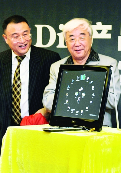 基于云计算技术的全球第一款数字影像收发机“Dir”问世。由蒂尔数字影像技术有限公司等研制的影像收发机,操作简便,轻按收发机摇控器,就可实现海量影像信息传输,还可将应急信息发送到手机上。是一种结合新媒体、电子消费品以及3G应用的终端设备。图为著名作家苏叔阳在体验新产品。