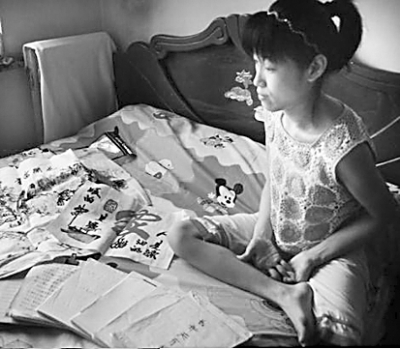 母亲读懂了我的心事。她向邻居家的哥哥姐姐借来课本,开始教我识字,还在书店给我办了借书证。随着书读得越来越多,我慢慢有了用文字表达的愿望,但是双手却不听使唤。偶然的一天,我在电视上看到一个没有双手的小孩用脚写书法的故事,我想,不如也练练双脚写字的技能!