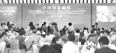 中国国家画院“七院”成立大会于2010年8月31日下午16时在钓鱼台国宾馆芳菲苑隆重举行。文化部部长蔡武,中国文联副主席冯远,国务院编办副主任王澜明,中国国家博物馆馆长吕章申,中国美术家协会主席刘大为,国务院参事室副主任、北京画院院长王明明,中央国家机关工委宣传部部长刘涛,文化部办公厅主任杨建昆,文化部外联局局长董俊新,中国国家画院院长杨晓阳,中国国家画院常务副院长卢禹舜,文化部财务司副司长饶权、马秦临,文化部艺术司副司长诸迪,中国美术家协会副主席曾成钢、许钦松,中国美术家协会秘书长刘健,中国书法家协会副主席申万胜,中央美术学院院长潘公凯,鲁迅美术学院院长韦尔申,天津美术学院院长姜陆,广州美术学院院长黎明,湖北美术学院院长徐勇民,山东工艺美术学院院长潘鲁生,还有以力群、黄永玉、欧阳中石、杨之光、沈鹏、钱绍武、詹建俊、靳尚谊、刘勃舒、杨力舟、韩美林、尼玛泽仁、邹佩珠、郑闻慧、袁运甫、邵大箴、广军等为代表的来自全国各地的著名艺术家,各地方美协和画院的主要领导,文化部、中国文联以及各兄弟单位的嘉宾,中国国家画院的画家和工作人员以及新闻媒体记者共计300余人参加此次大会。