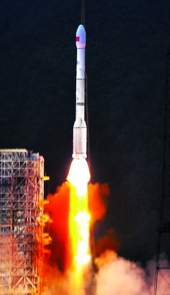 北京时间10月1日18点59分57秒,长征三号丙火箭携嫦娥二号卫星从西昌卫星发射中心的发射塔架上呼啸而起,冲破雨雾直入云霄。