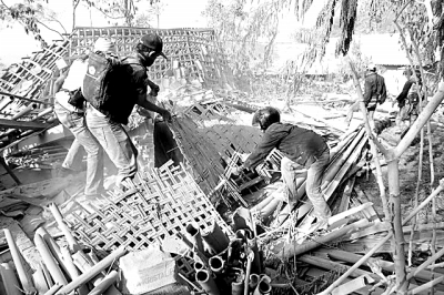 压题图为救援人员在印尼海啸造成的损毁现场寻找幸存者。