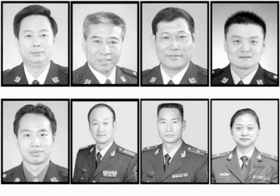 震后第四天凌晨,战友们首先找到了新闻官钟荐勤的遗体。随后,战友们发现了另外几名中方警员的遗体,他们是:李钦、和志虹、王树林、郭宝山、朱晓平、李晓明、赵化宇。