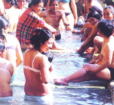 登埂澡塘位于怒江傈僳族自治州州府六库以北十余公里的怒江边上,明清时期,这里的“春浴节”活动已有较大的规模。据史书记载:“热水塘无人户,每年春节土人群聚于此入浴。男女老少来会者五六百人,各携带寝具、炊具、食物等进行数日沐浴治病。”“每年春初汉夷聚集洗澡对歌”,“年关后的十日之集合,名为澡埂会,到温池沐浴,男女混杂,口歌脚舞,人民一年之俱乐斯会也”。