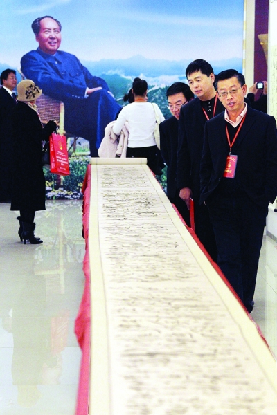 在毛泽东诞辰117周年到来之际,由中国毛体书法家协会、中国毛体书法研究院主办的“廊坊杯”全国书画展在河北省廊坊市隆重举行,展出的毛体书法作品格外引人注目。本报记者 刘新武摄