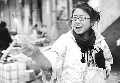 2月2日,舟曲街上的小女孩在放烟火。光明网记者 杨慧峰摄